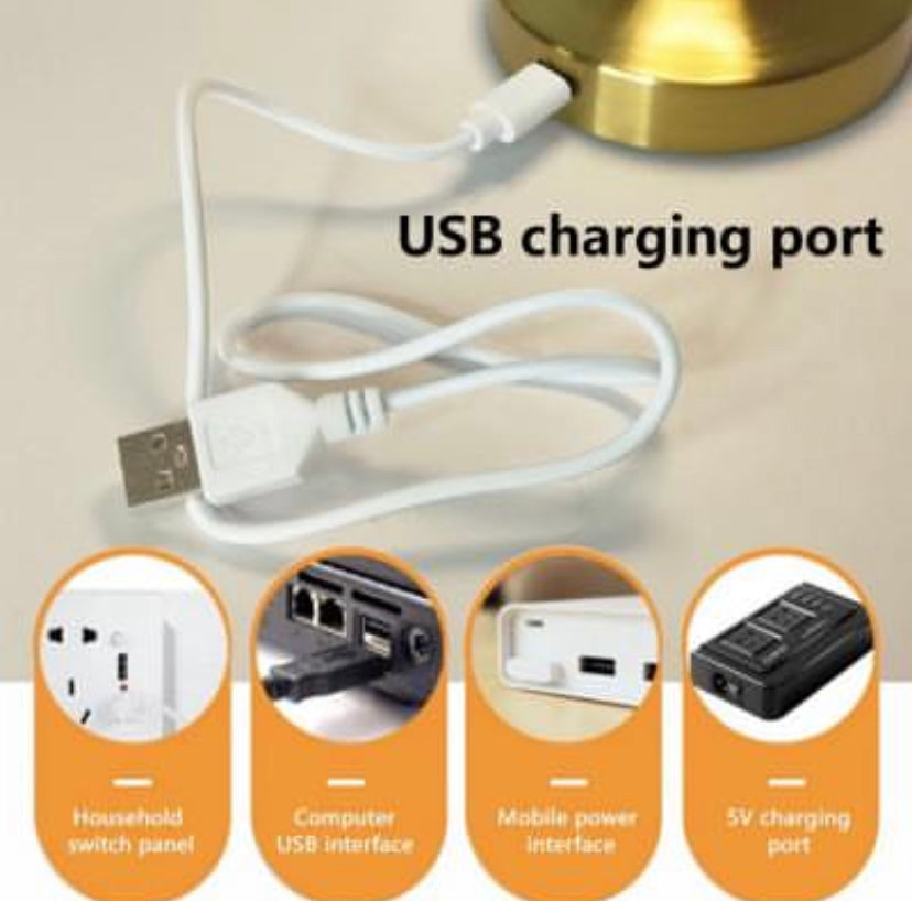Lampe de table LED sans fil en or, avec contrôle tactile. Elle est dimmable, offre 3 modes de luminosité et est rechargeable par USB. Idéale pour la chambre, le salon, la salle à manger, ou le café